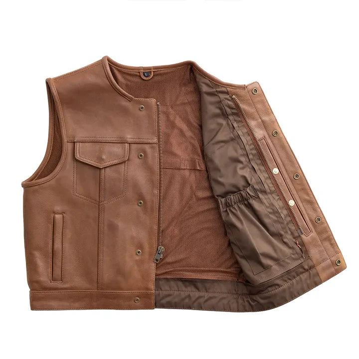 The Nocturne Men’s Platinum Leather Motorcycle Vest is engineered for riders who demand top-tier quality, refined style, and unbeatable road durability. Crafted from premium platinum-grade leather, this vest offers a sleek, modern look with a structured fit designed for serious riding. Whether worn over a shirt or paired with a jacket, it delivers superior comfort, protection, and unmistakable presence on every ride