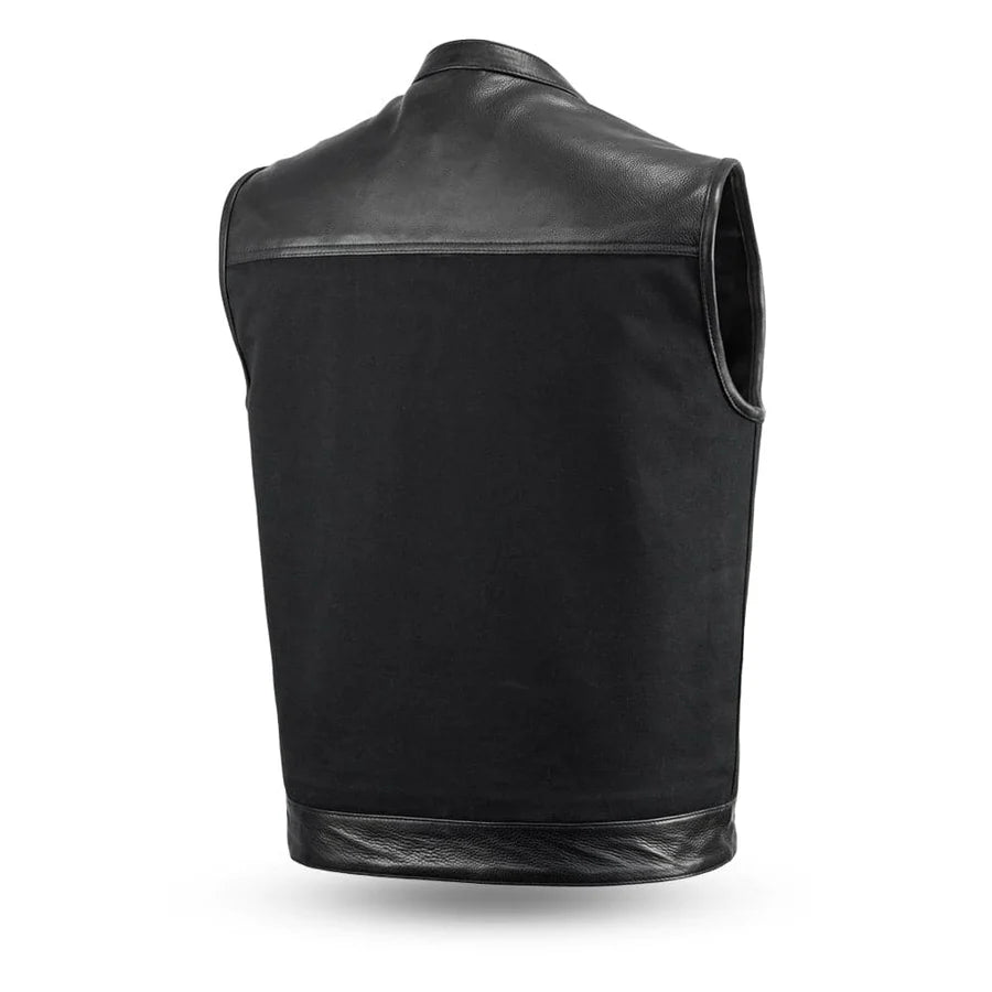 The Rustline 49/51 Men’s Motorcycle Leather/Canvas Vest delivers the perfect fusion of rugged canvas durability and premium leather strength. Designed for riders who demand a balanced mix of protection, comfort, and standout style, this hybrid vest offers a structured fit that works effortlessly over shirts or under jackets. Built for the road and crafted for long-lasting performance, it’s a must-have addition to any rider’s gear collection.