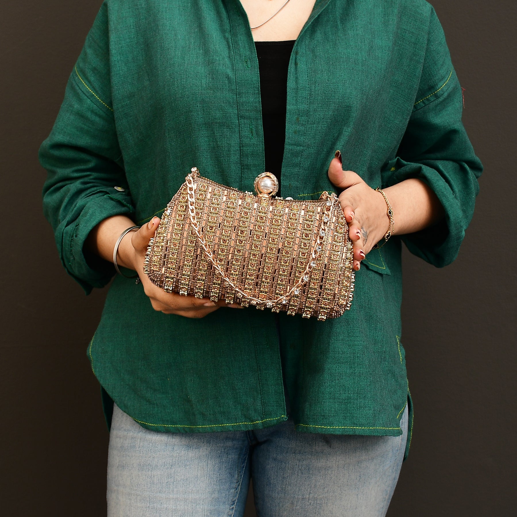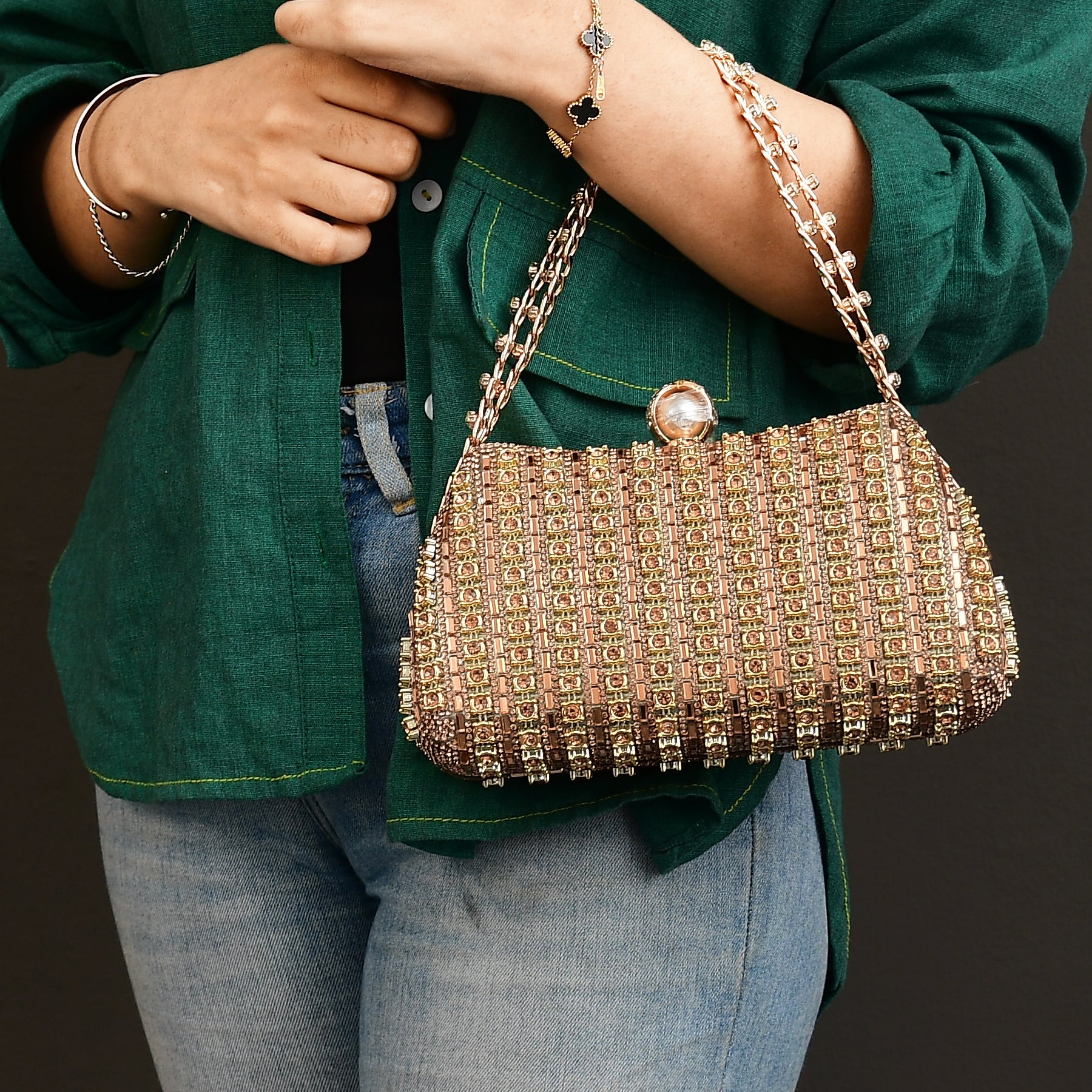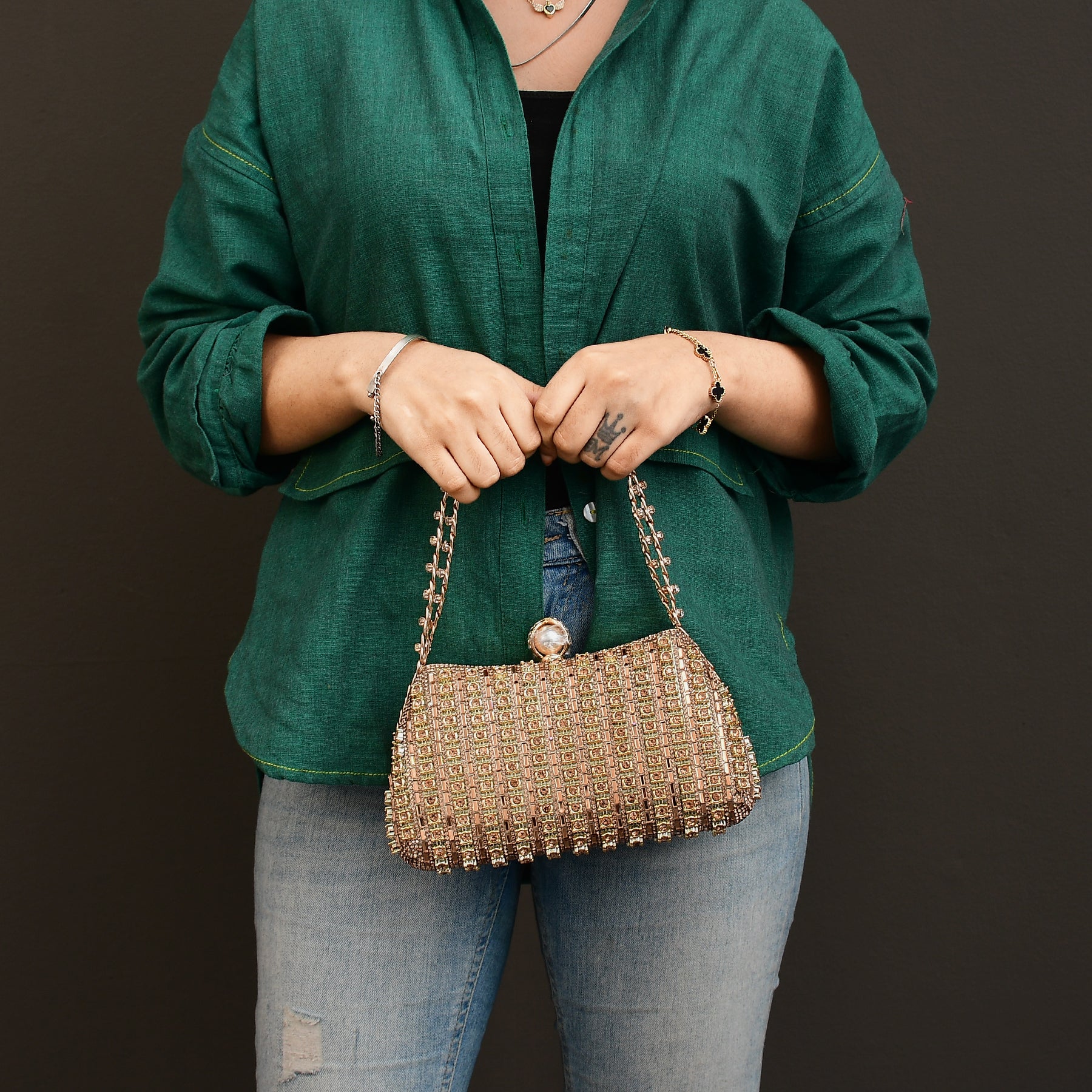 Multiple interior pockets for organized storage of phone, keys, and cosmetics.